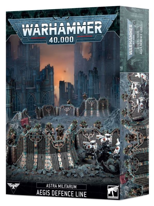 Aegis Defence Lines are barricades comprising crenellated armoured panels that link together in a solid shield-wall. Thanks to their simple design they can be built and deployed at great speed, and are thus ideal for establishing defensive perimeters before more permanent structures can be erected.