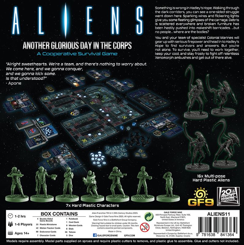 Aliens is a co-operative survival boardgame where you and your team of specialist Colonial Marines will gear up with serious firepower and head into Hadley's Hope to find survivors and answers. But you're not alone. To survive, you'll need to work together, keep your cool, and stay frosty to fight off relentless Xenomorph ambushes and get out of there alive.