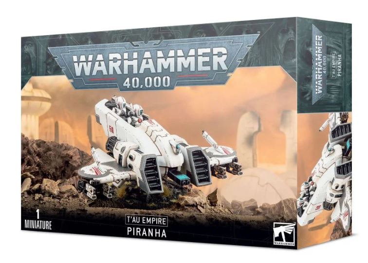 This boxed set contains 1 multi-part plastic T'au Piranha with a variety of optional parts and weapons.