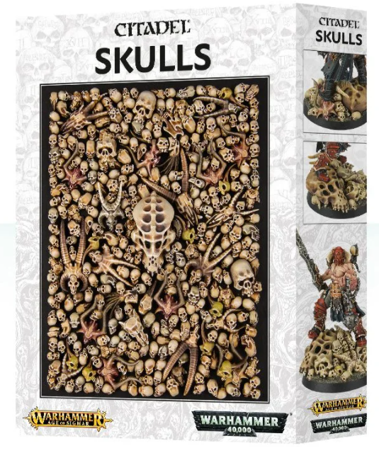 Enter the Citadel Skulls. This is a box of 340 (yes, three hundred and forty!) plastic skulls, designed for the hobbyist to decorate scenery, bases and models as they see fit. There are even 20 extra jawbones!